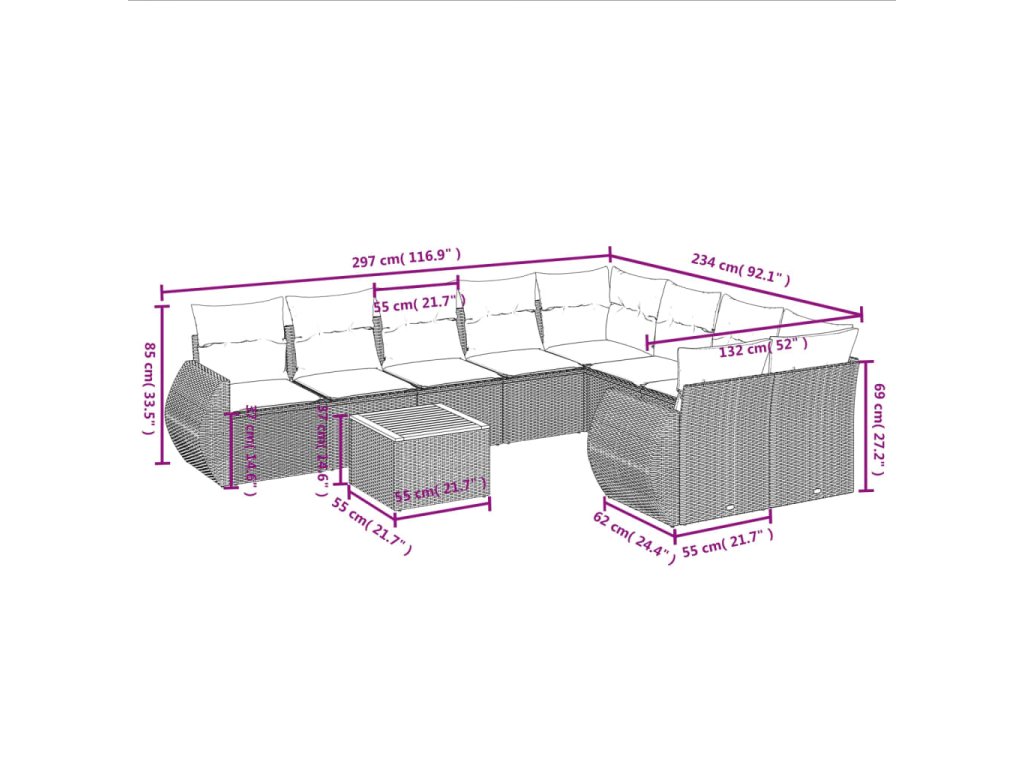 Tato zahradní sedací souprava je dokonalým doplňkem vaší zahrady, terasy nebo dvorku a poskytne vám pohodlné a příjemné místo, kde si můžete povídat s rodinou a přáteli nebo jen tak odpočívat a užívat si pobyt venku.