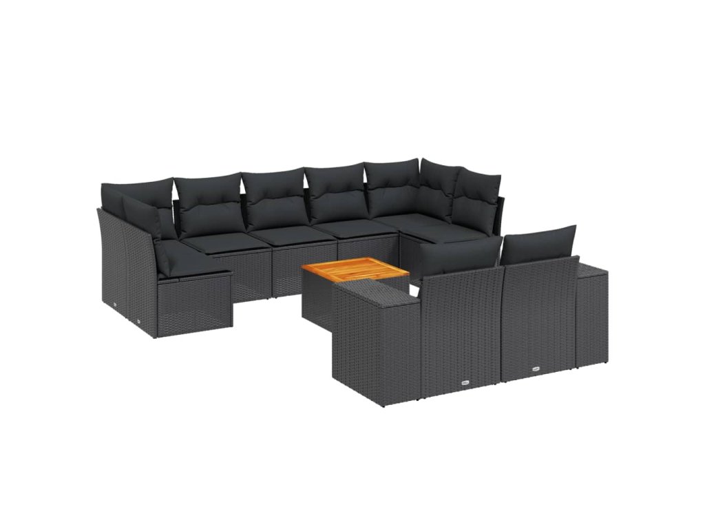 10dílná zahradní sedací souprava s poduškami černá polyratan 3257924