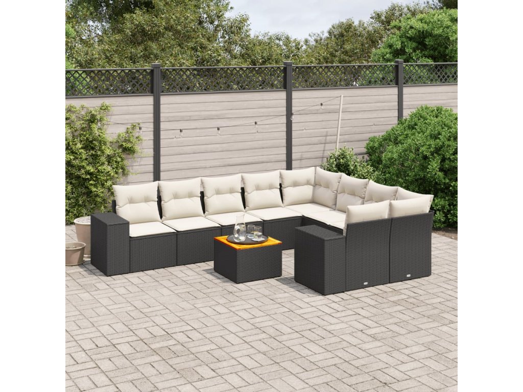 10dílná zahradní sedací souprava s poduškami černá polyratan 3257932