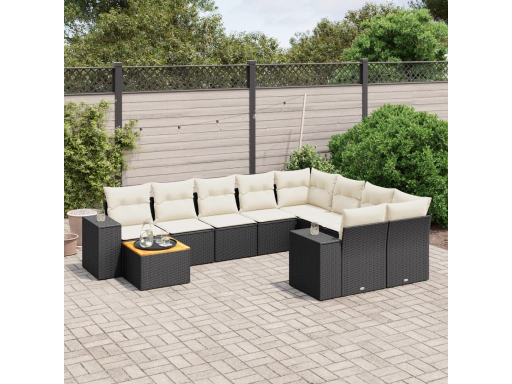 10dílná zahradní sedací souprava s poduškami černá polyratan 3257939