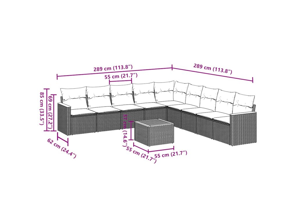 Tato zahradní sedací souprava je dokonalým doplňkem vaší zahrady, terasy nebo dvorku a poskytne vám pohodlné a příjemné místo, kde si můžete povídat s rodinou a přáteli nebo jen tak odpočívat a užívat si pobyt venku.