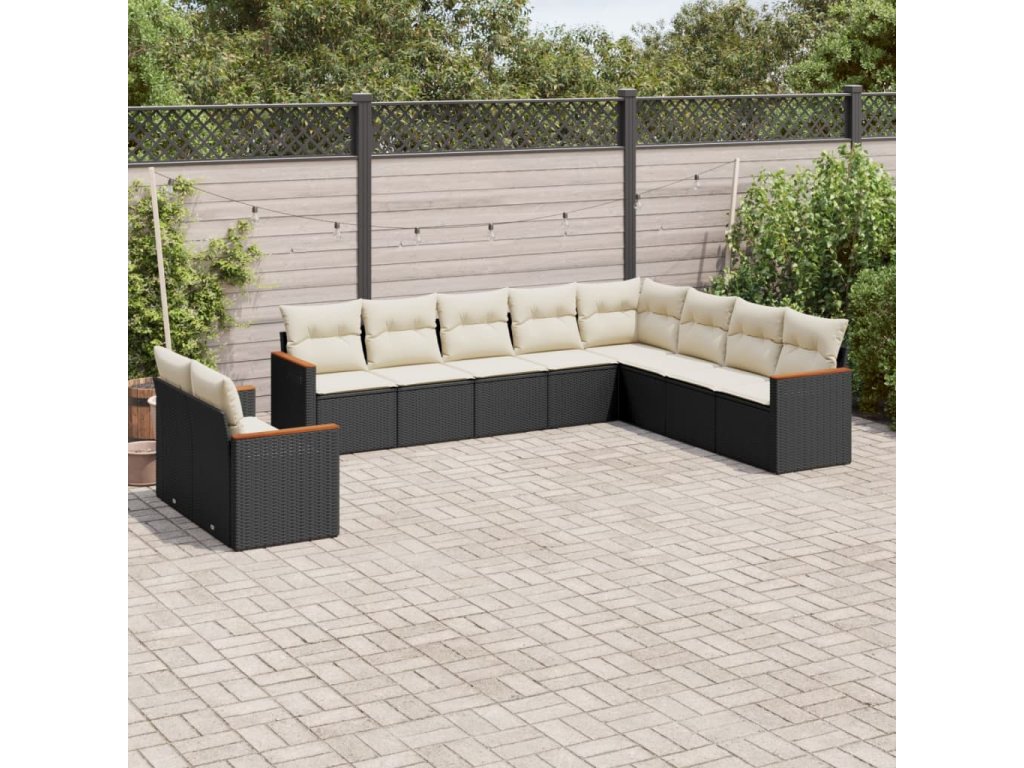 10dílná zahradní sedací souprava s poduškami černá polyratan 3258514