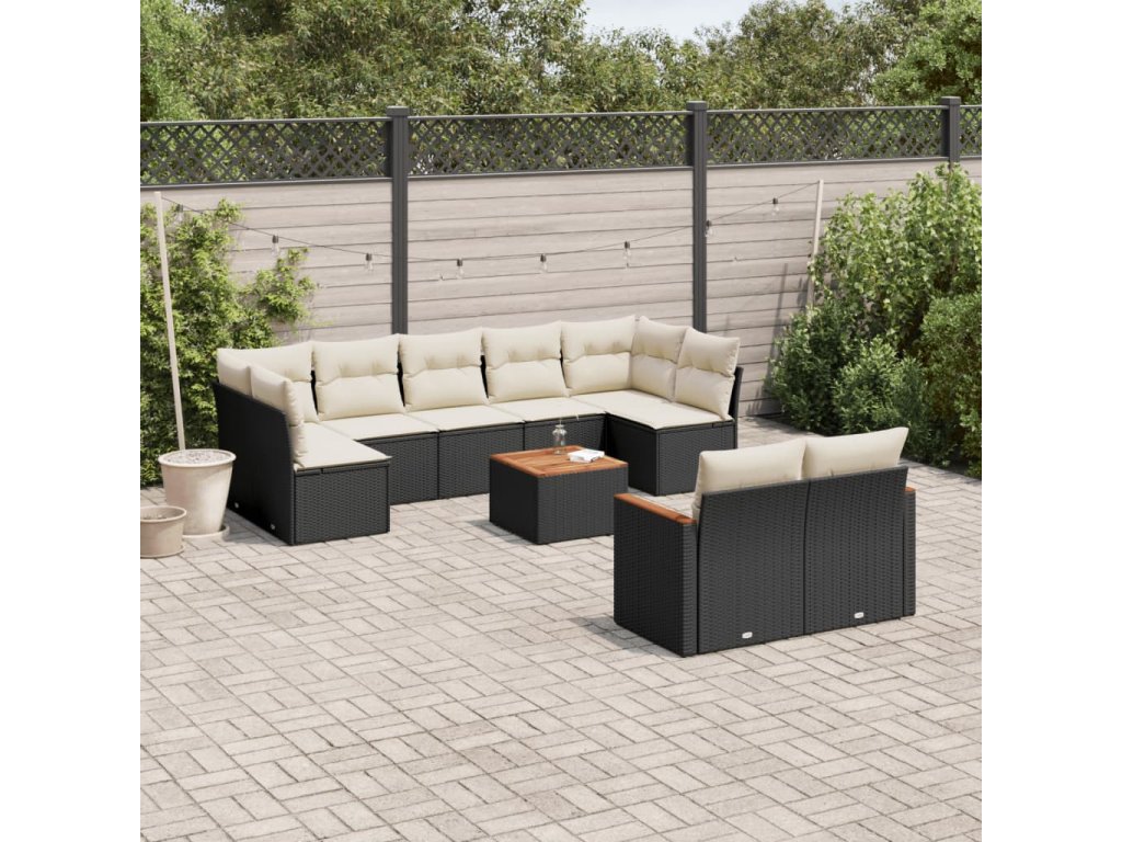10dílná zahradní sedací souprava s poduškami černá polyratan 3258696