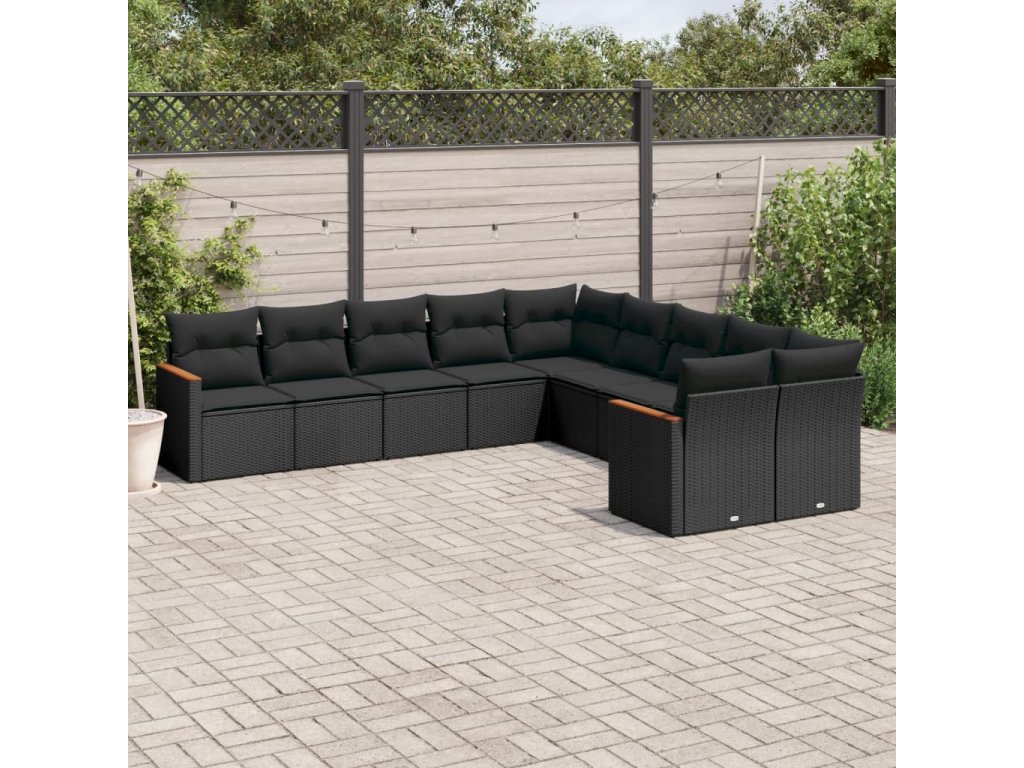 10dílná zahradní sedací souprava s poduškami černá polyratan 3258751