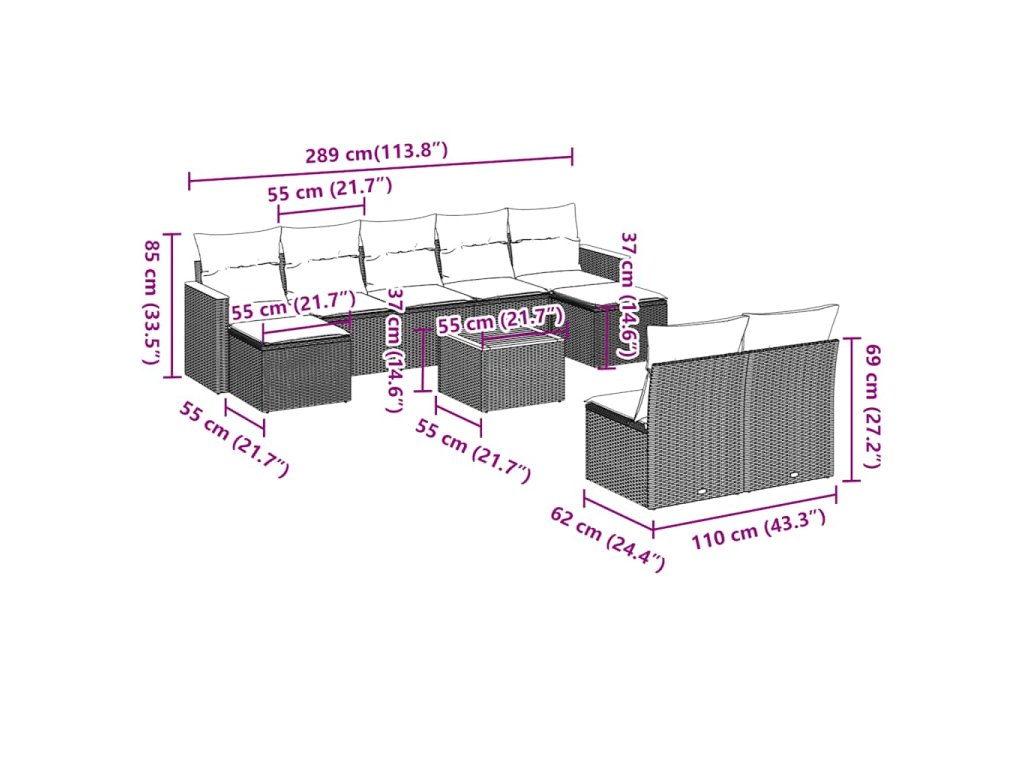 10dílná zahradní sedací souprava s poduškami černá polyratan 3258780