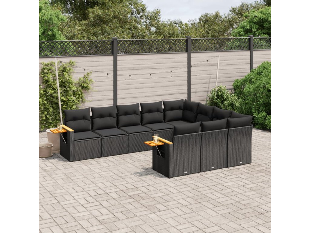 10dílná zahradní sedací souprava s poduškami černá polyratan 3259577