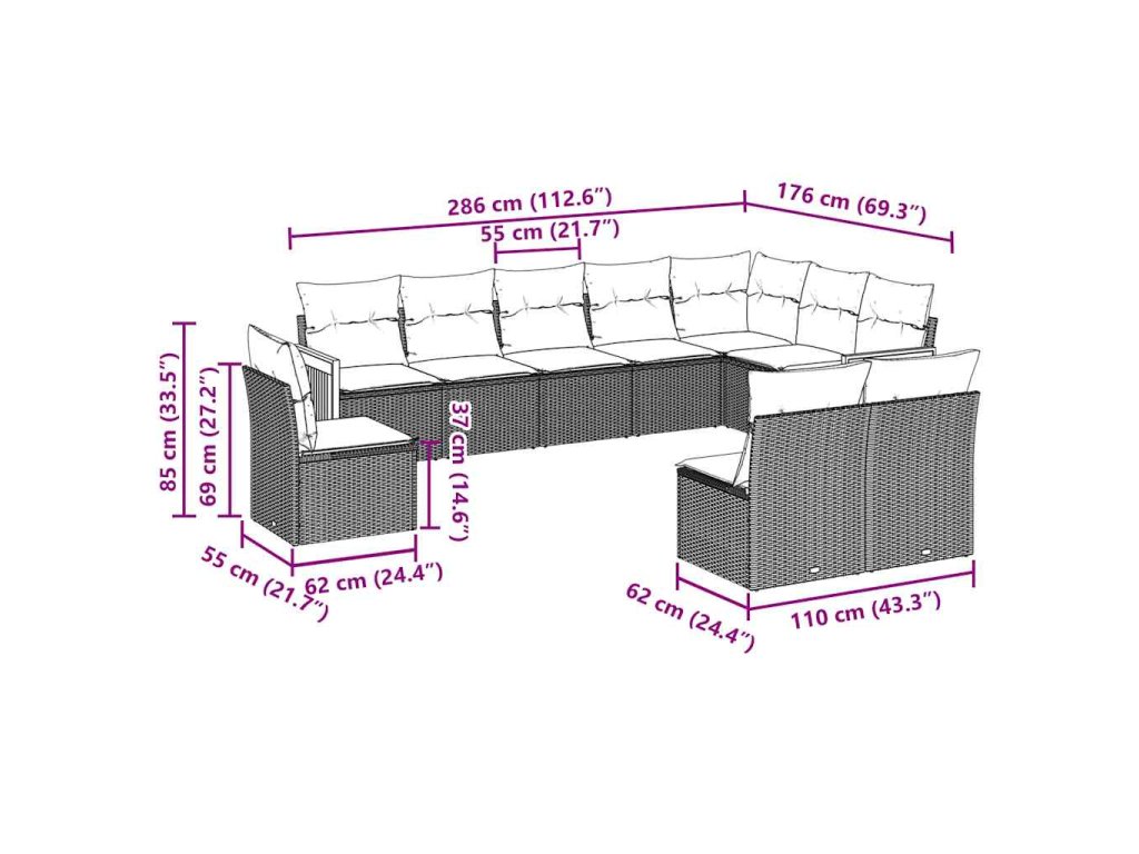 10dílná zahradní sedací souprava s poduškami černá polyratan 3260152