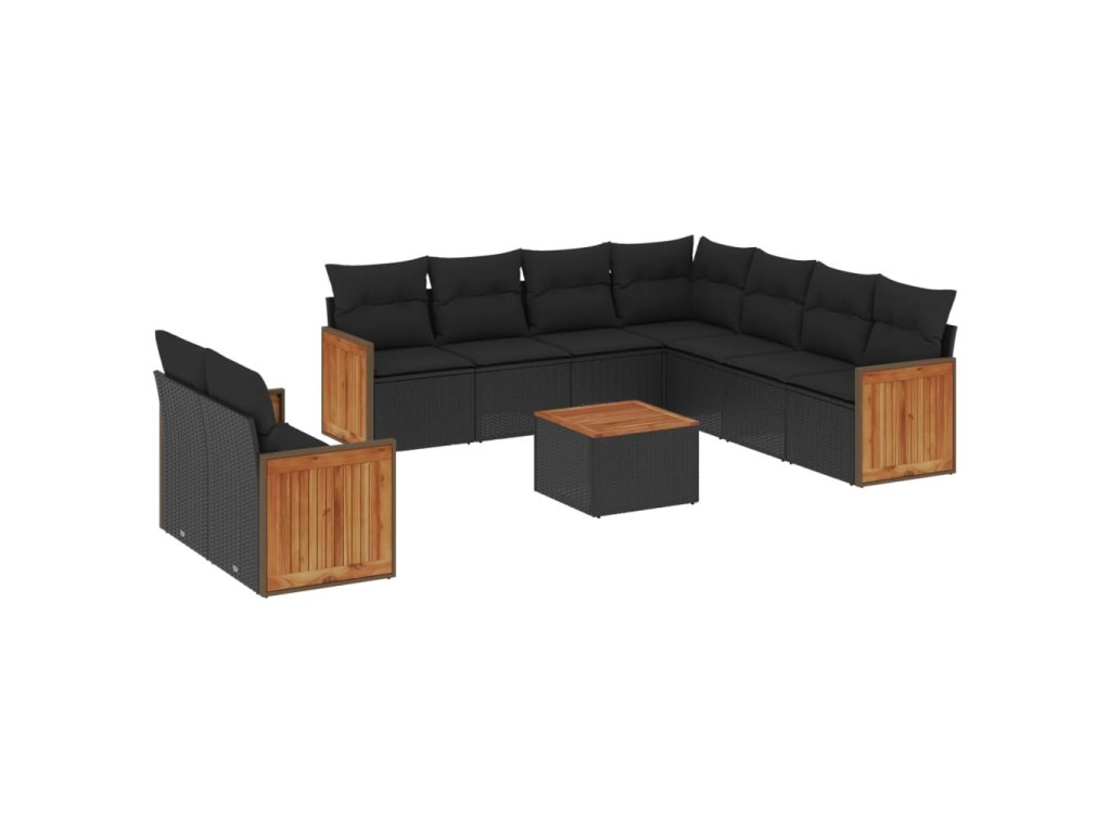 10dílná zahradní sedací souprava s poduškami černá polyratan 3260186
