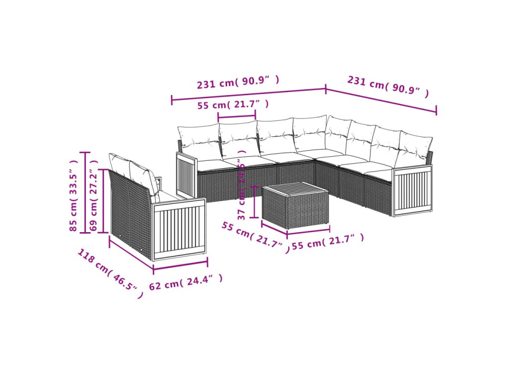 Tato zahradní sedací souprava je dokonalým doplňkem vaší zahrady, terasy nebo dvorku a poskytne vám pohodlné a příjemné místo, kde si můžete povídat s rodinou a přáteli nebo jen tak odpočívat a užívat si pobyt venku.