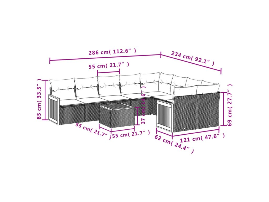 10dílná zahradní sedací souprava s poduškami černá polyratan 3260389