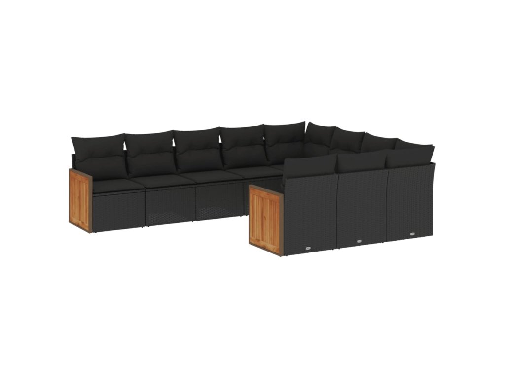 10dílná zahradní sedací souprava s poduškami černá polyratan 3260417