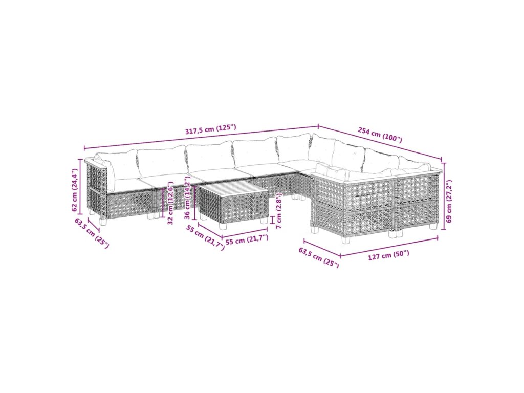 10dílná zahradní sedací souprava s poduškami černá polyratan 3262010