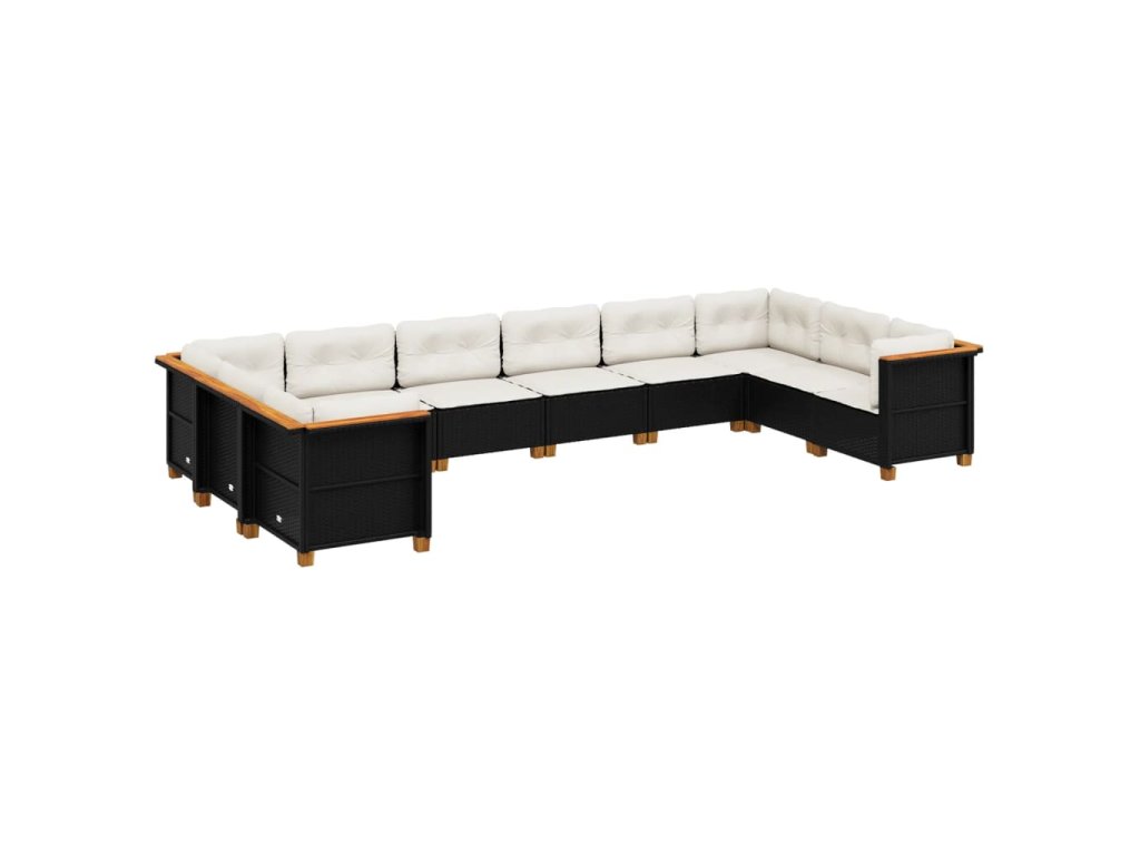 10dílná zahradní sedací souprava s poduškami černá polyratan 3262019