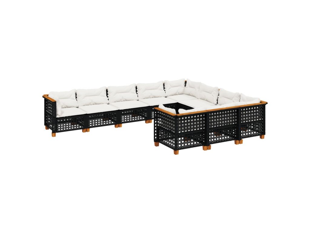 10dílná zahradní sedací souprava s poduškami černá polyratan 3262034