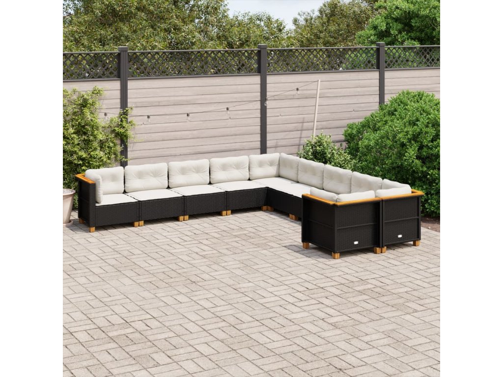 10dílná zahradní sedací souprava s poduškami černá polyratan 3262043