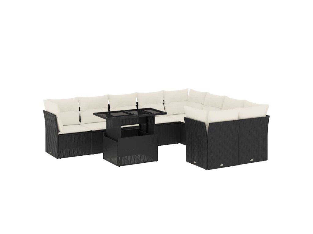 10dílná zahradní sedací souprava s poduškami černá polyratan 3266836