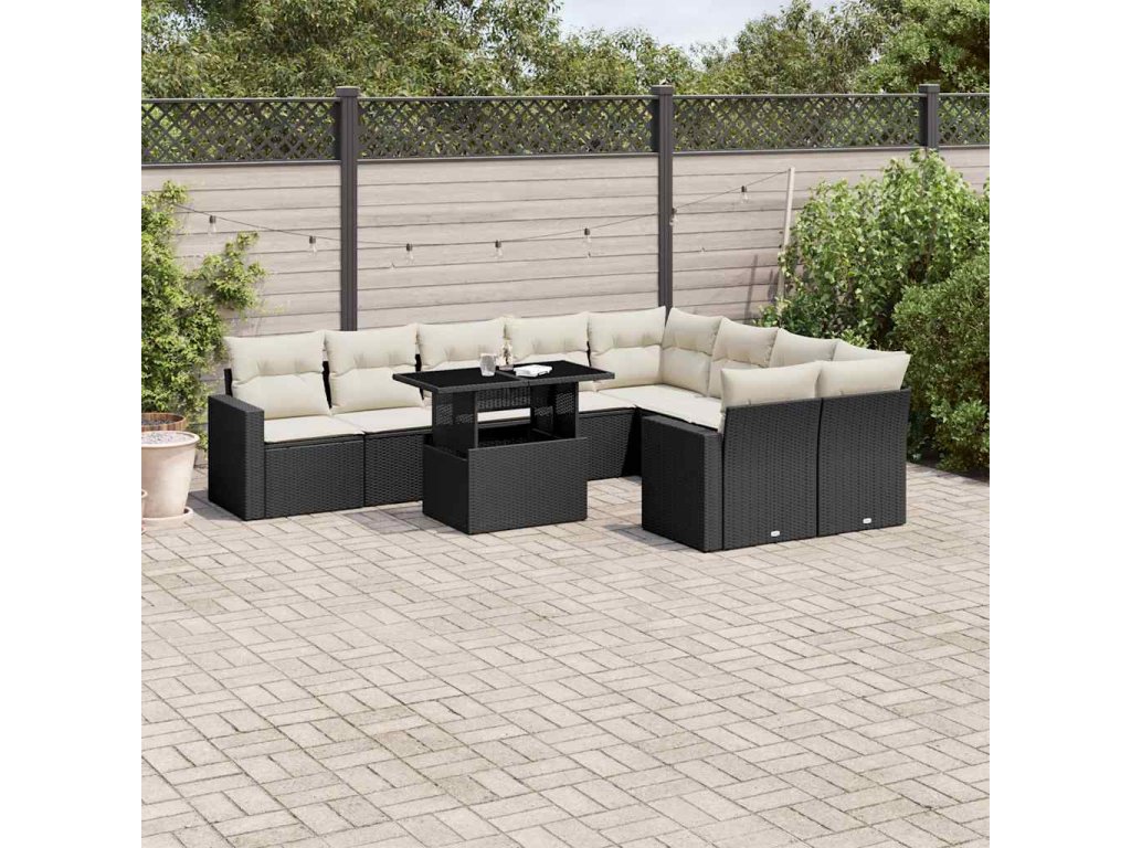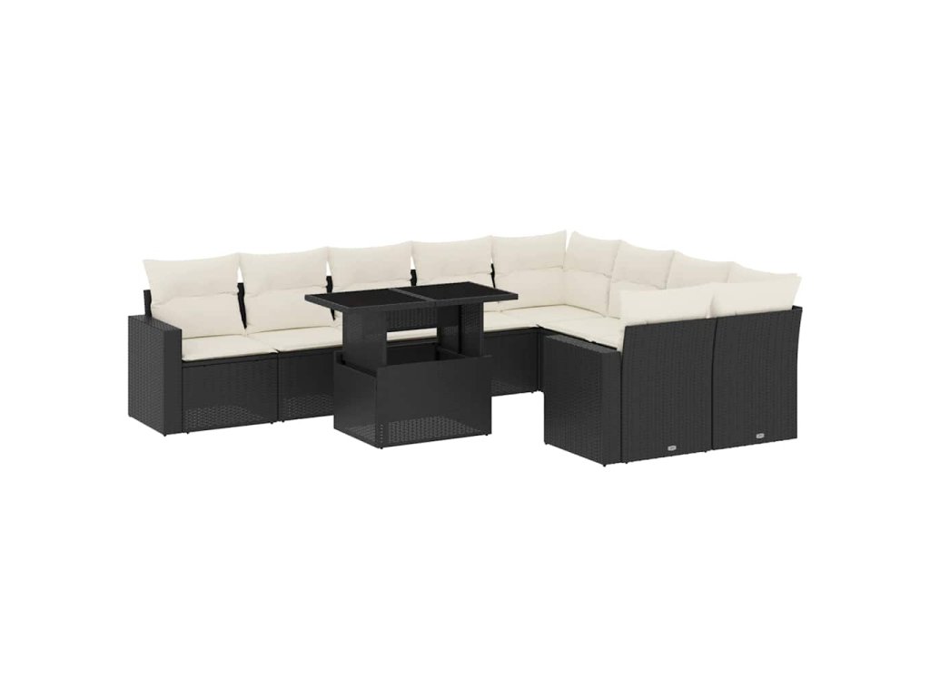 10dílná zahradní sedací souprava s poduškami černá polyratan 3267496