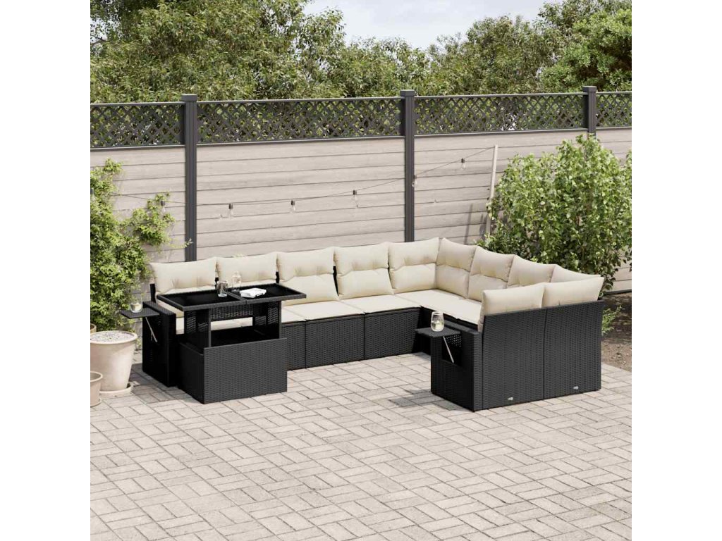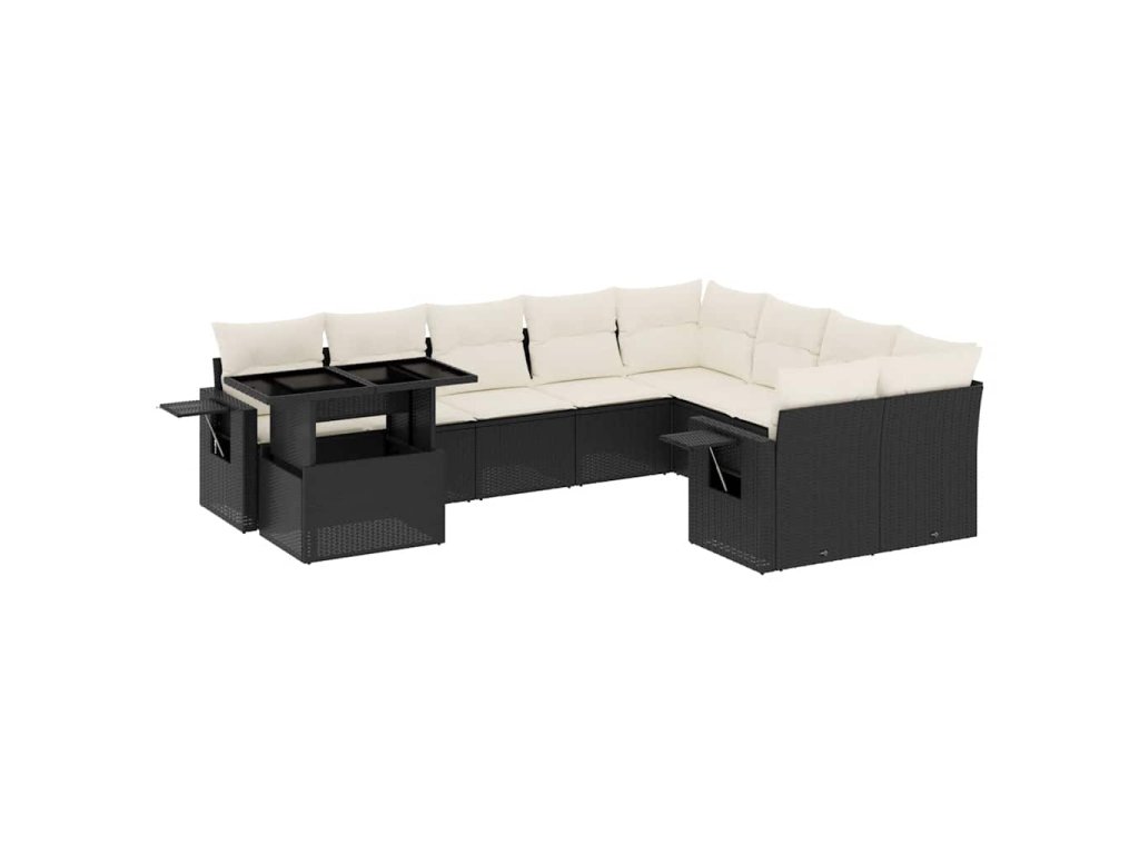 10dílná zahradní sedací souprava s poduškami černá polyratan 3268136