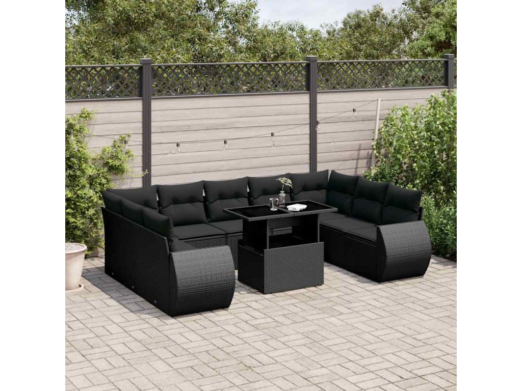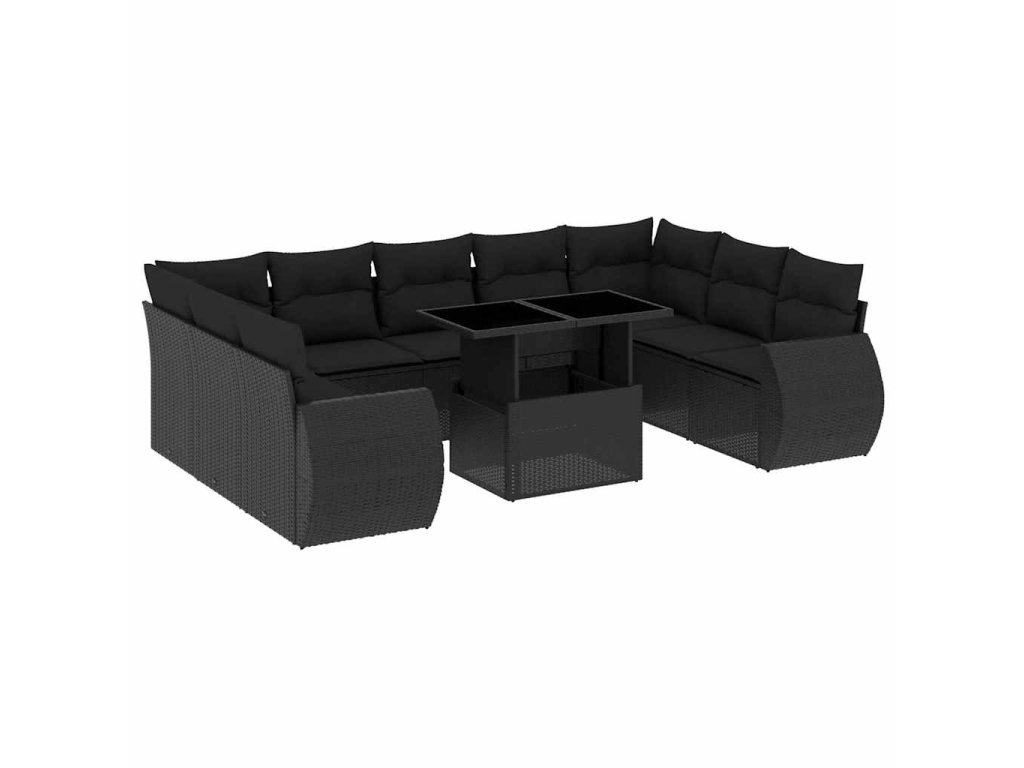 10dílná zahradní sedací souprava s poduškami černá polyratan 3268735