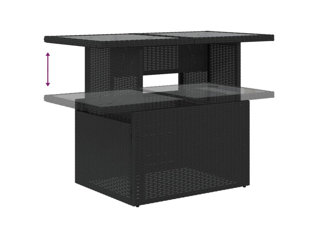 - Materiál: PE ratan, práškově lakovaná ocel, tvrzené sklo