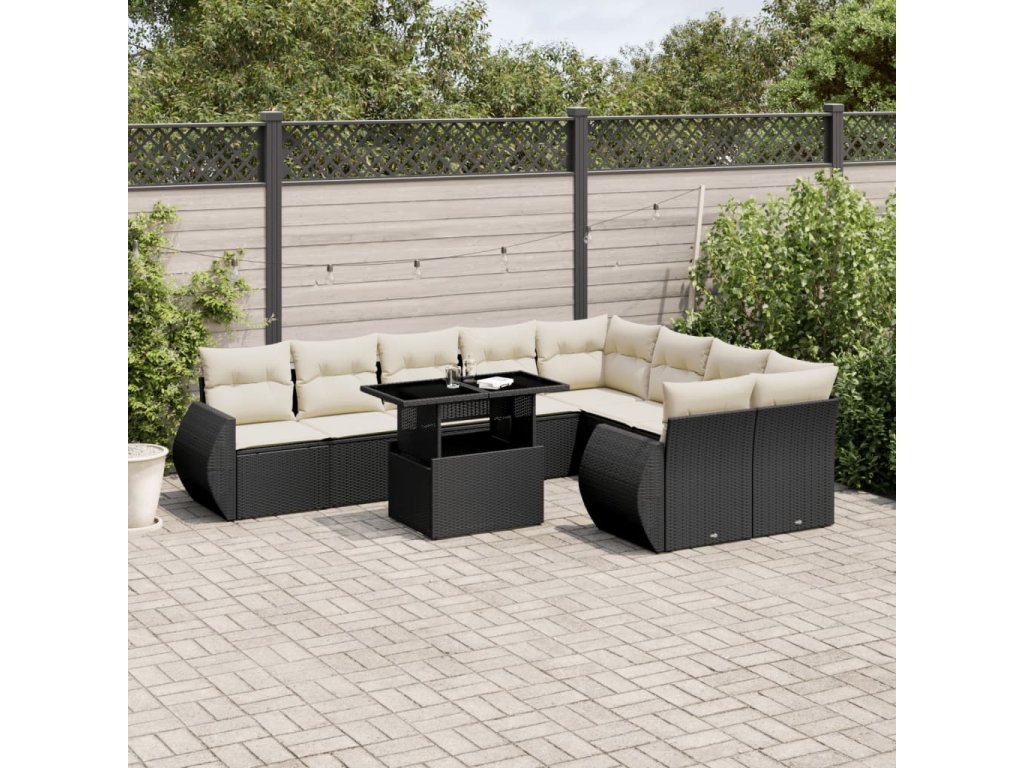 10dílná zahradní sedací souprava s poduškami černá polyratan 3268756