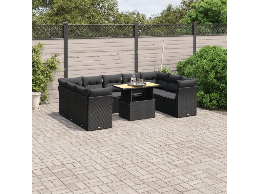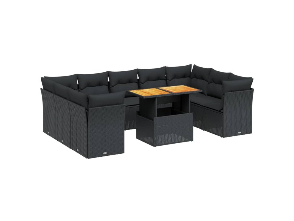 10dílná zahradní sedací souprava s poduškami černá polyratan 3270992