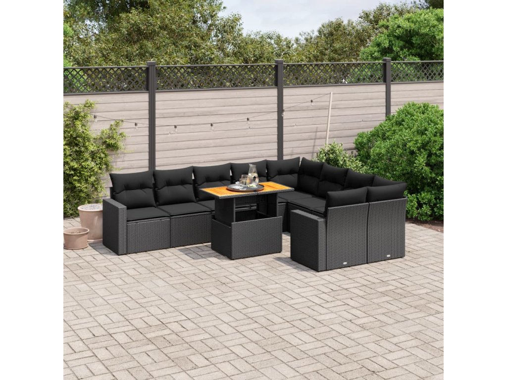 10dílná zahradní sedací souprava s poduškami černá polyratan 3271468
