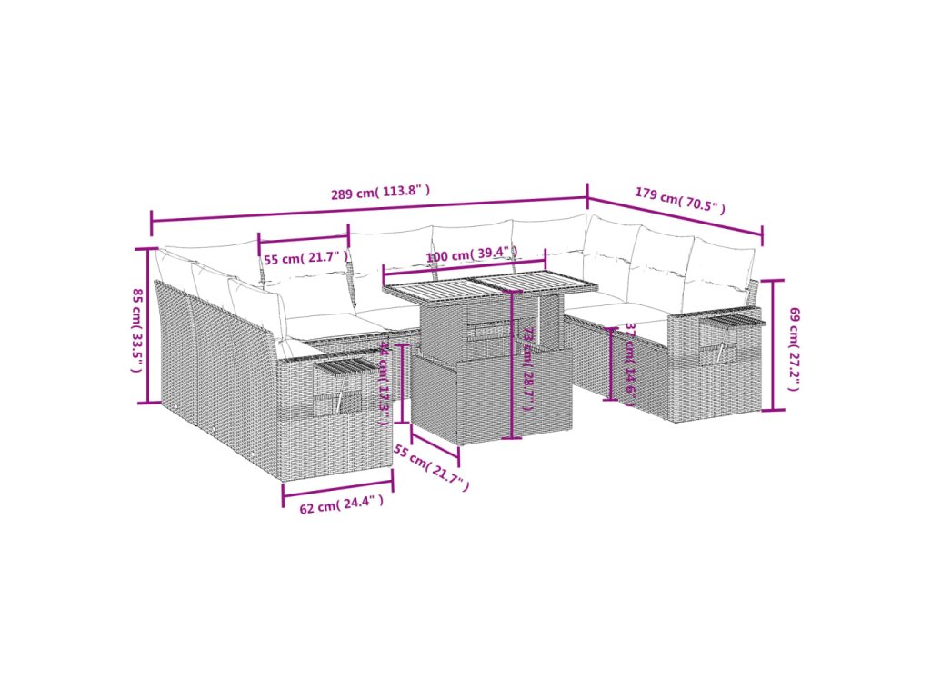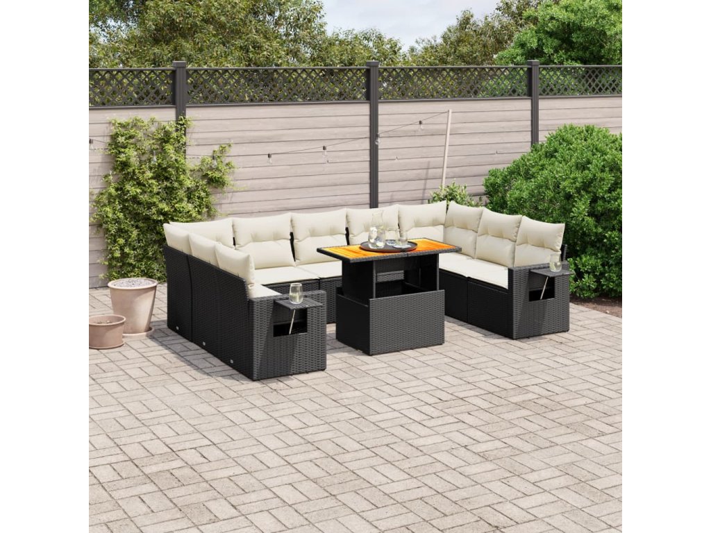 10dílná zahradní sedací souprava s poduškami černá polyratan 3271896