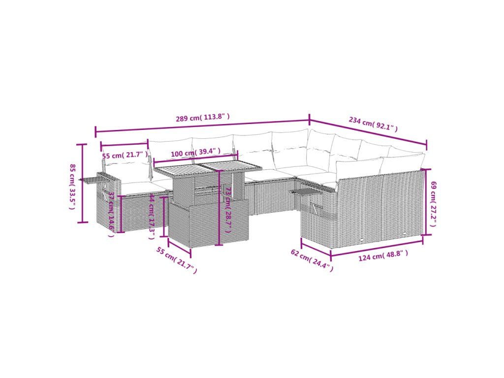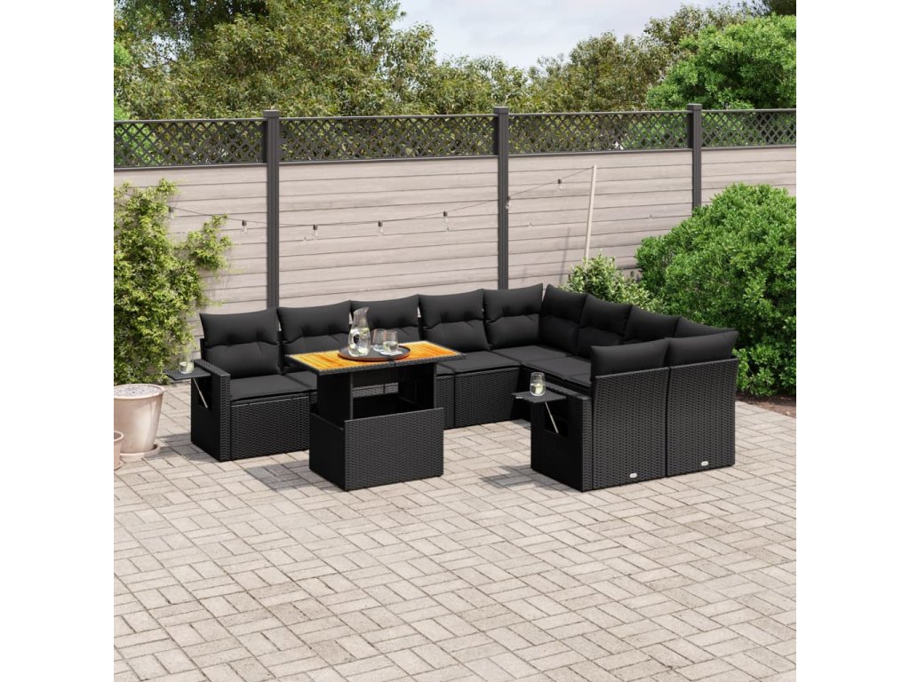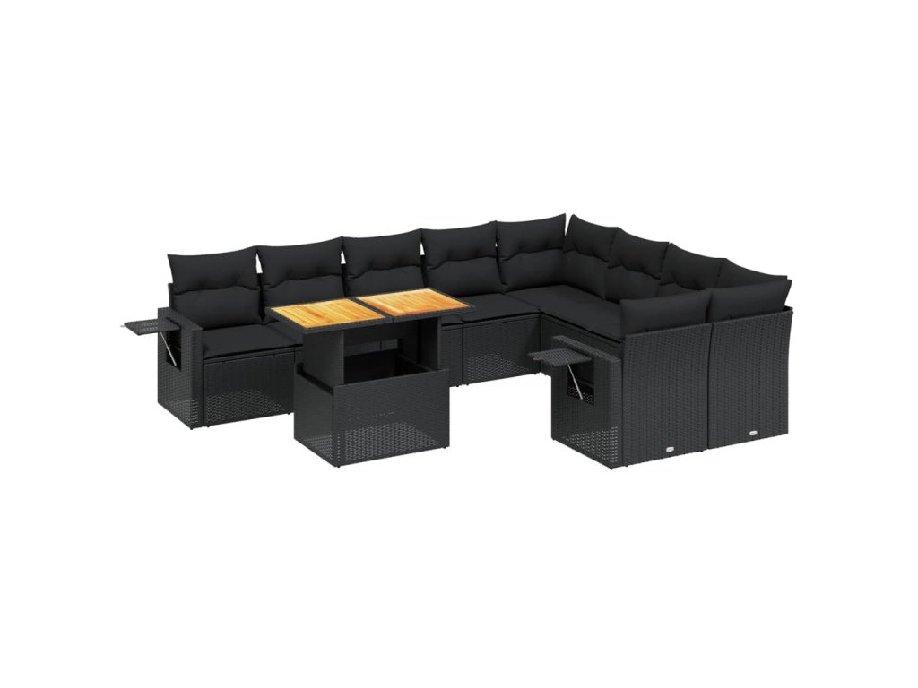 10dílná zahradní sedací souprava s poduškami černá polyratan 3271909