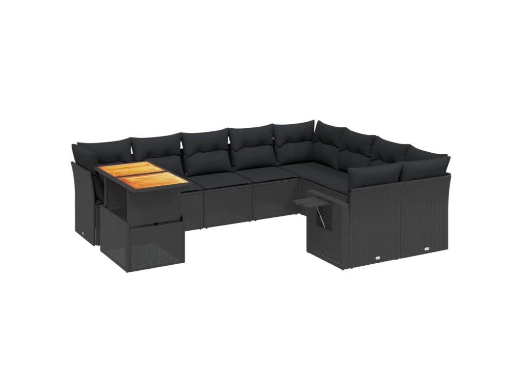 10dílná zahradní sedací souprava s poduškami černá polyratan 3271916