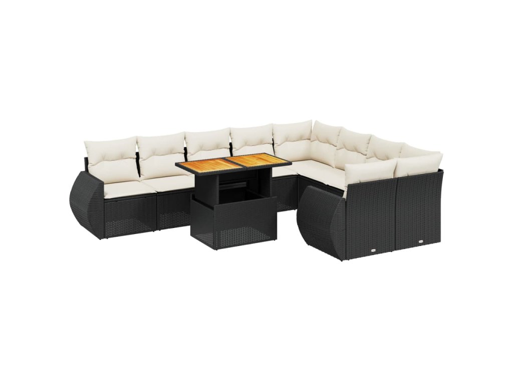 10dílná zahradní sedací souprava s poduškami černá polyratan 3272351