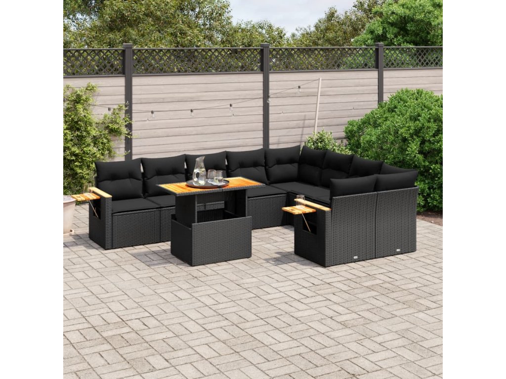 10dílná zahradní sedací souprava s poduškami černá polyratan 3273673