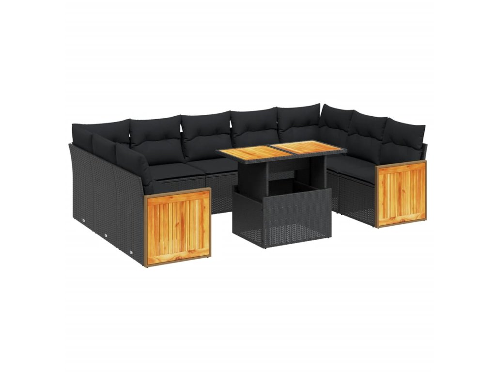 10dílná zahradní sedací souprava s poduškami černá polyratan 3274100
