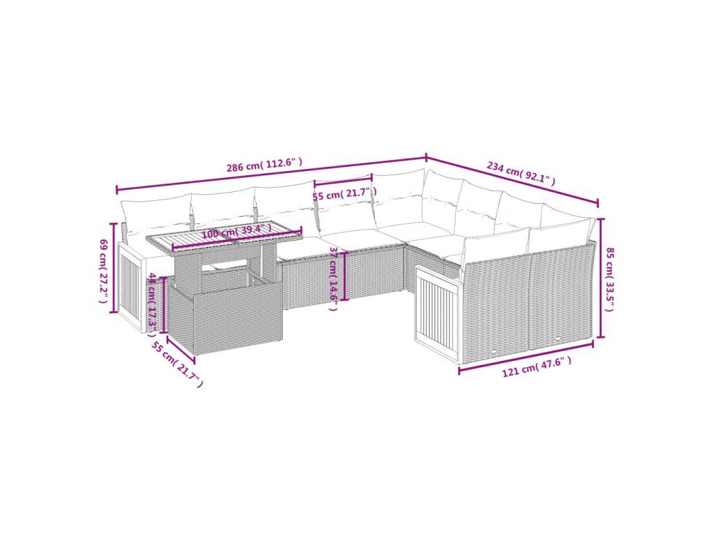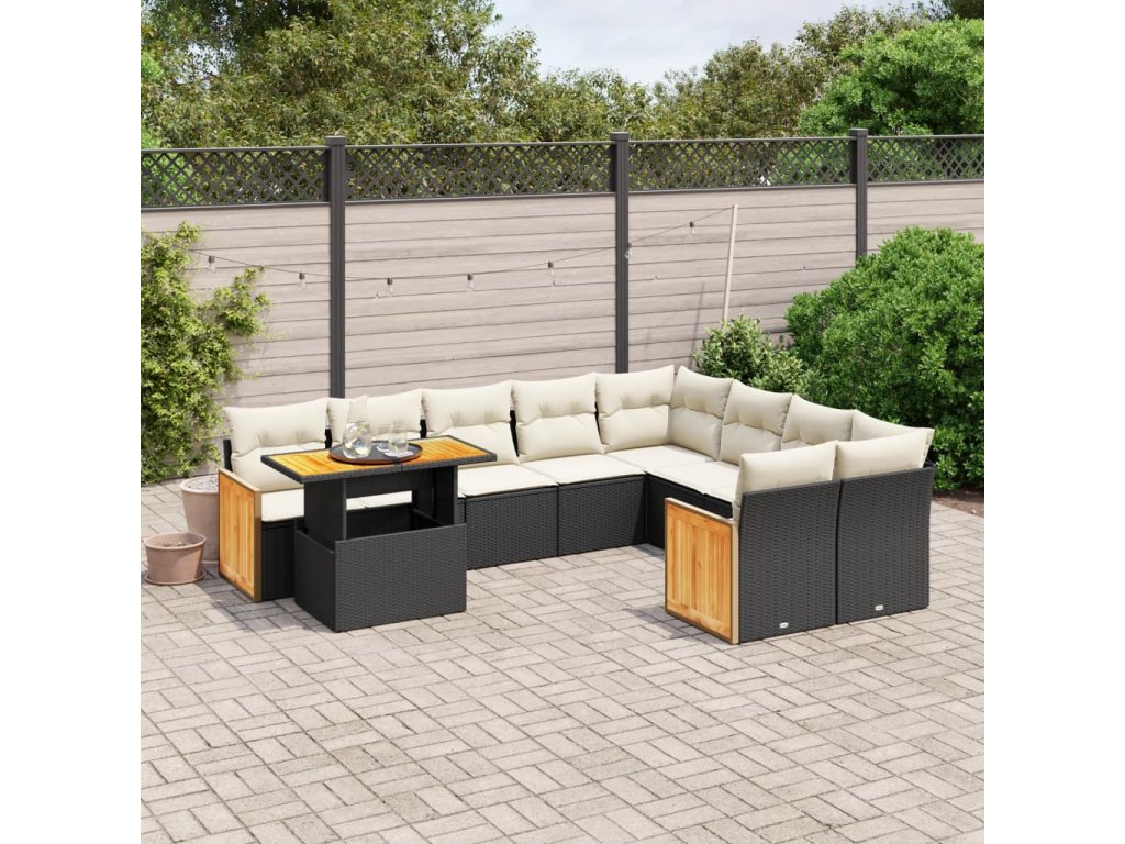 10dílná zahradní sedací souprava s poduškami černá polyratan 3274122