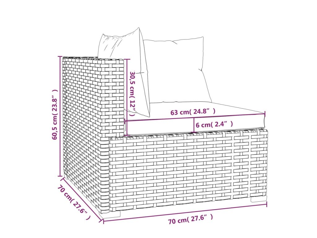 - Rozměry každé středové pohovky: 70 x 70 x 60,5 cm (D x Š x V)