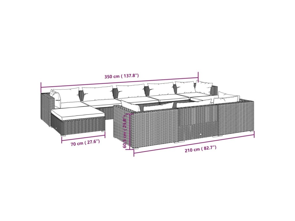 10dílná zahradní sedací souprava s poduškami hnědá polyratan 3102044
