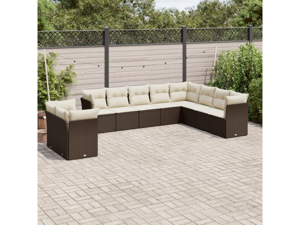 10dílná zahradní sedací souprava s poduškami hnědá polyratan 3217863