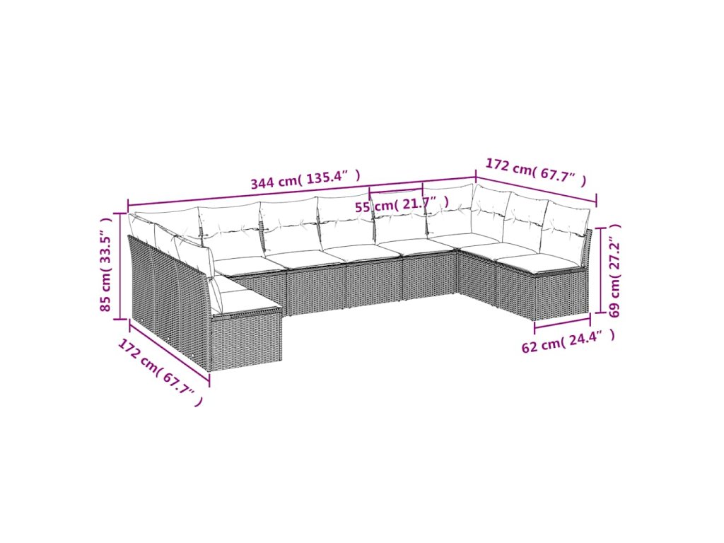 10dílná zahradní sedací souprava s poduškami hnědá polyratan 3218093