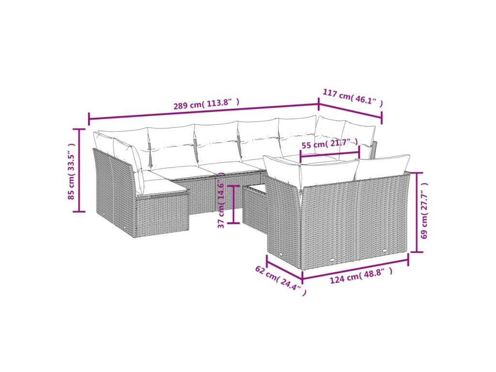 10dílná zahradní sedací souprava s poduškami hnědá polyratan 3218163