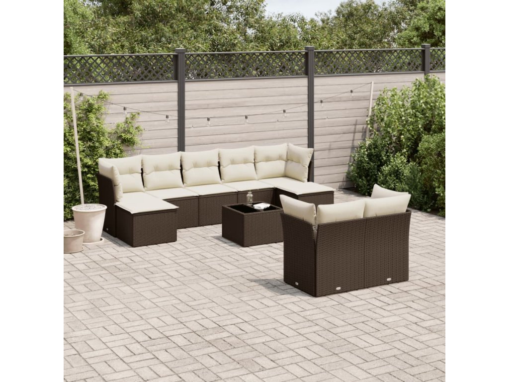 10dílná zahradní sedací souprava s poduškami hnědá polyratan 3218323
