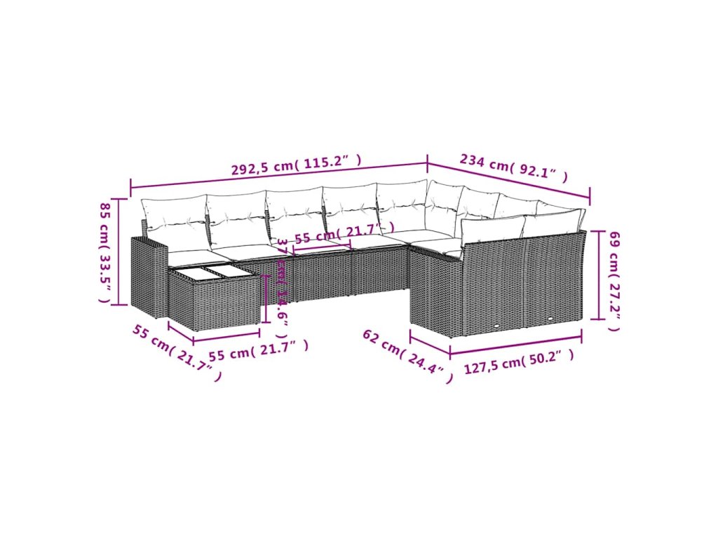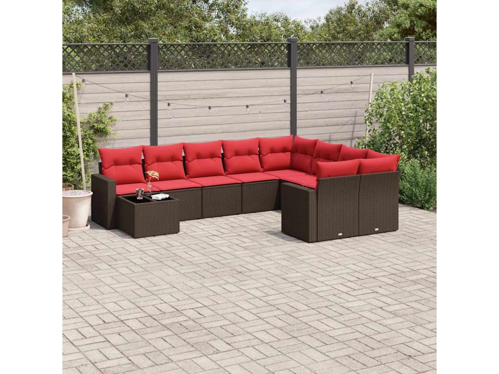 10dílná zahradní sedací souprava s poduškami hnědá polyratan 3219454
