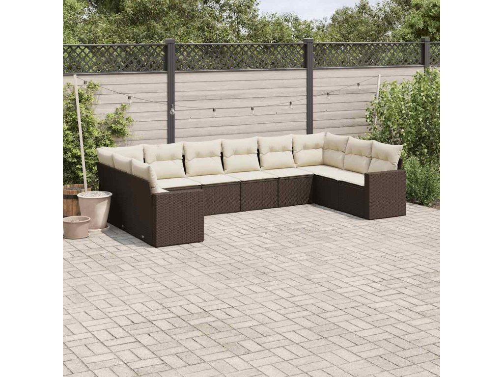 10dílná zahradní sedací souprava s poduškami hnědá polyratan 3219463