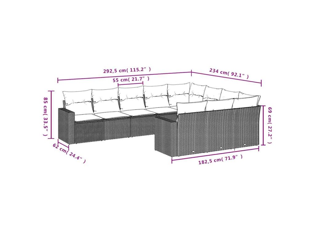 10dílná zahradní sedací souprava s poduškami hnědá polyratan 3219483