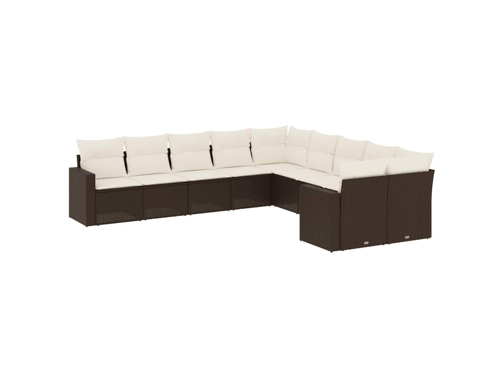 10dílná zahradní sedací souprava s poduškami hnědá polyratan 3219503