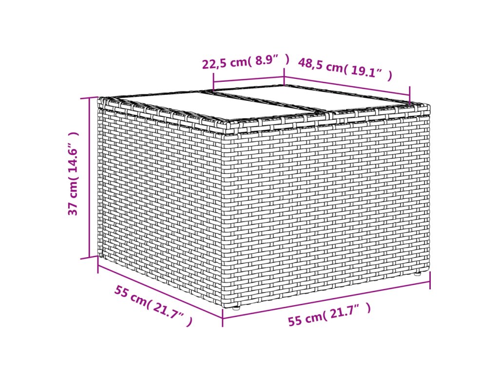 - Rozměry: 55 x 55 x 37 cm (D x Š x V)
