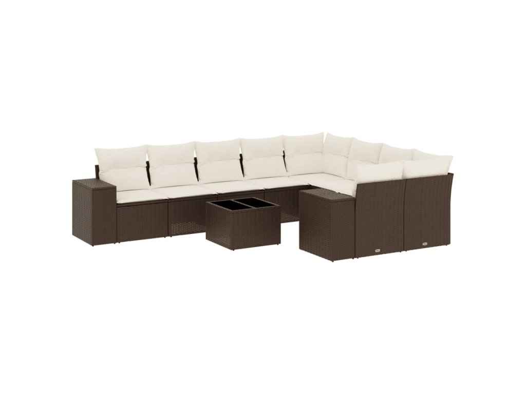 10dílná zahradní sedací souprava s poduškami hnědá polyratan 3223052
