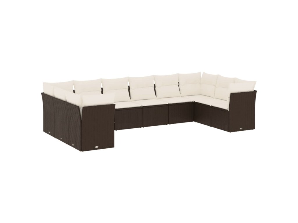 10dílná zahradní sedací souprava s poduškami hnědá polyratan 3250042