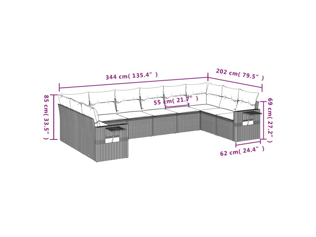 10dílná zahradní sedací souprava s poduškami hnědá polyratan 3253010