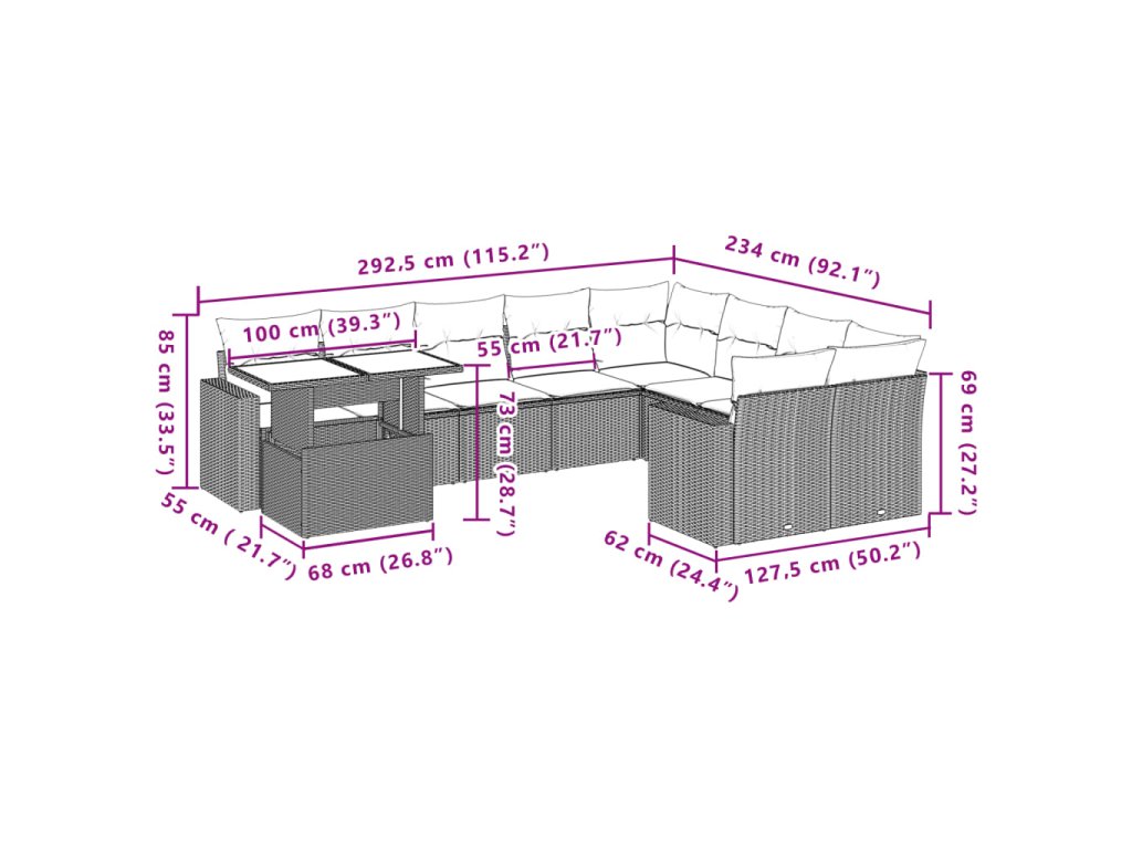 10dílná zahradní sedací souprava s poduškami hnědá polyratan 3267513