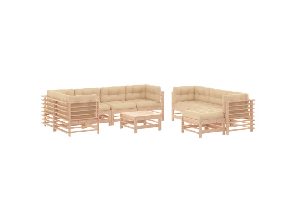 10dílná zahradní sedací souprava s poduškami masivní dřevo 3186095